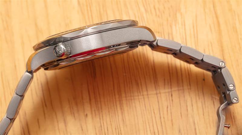 最新一代的海馬 300M 手表比上一代略大,表殼寬 42 毫米,表殼寬 41 毫米。防水深度達 300 米,表殼厚約 12 毫米,表耳到表耳的距離約為 50 毫米。佩戴舒適度很高,但它是一款笨重的手表——尤其是與金屬表鏈搭配時。對表殼進行的最有趣但微妙的更新之一是位于表殼 10 點鐘位置的氦釋放閥表冠的錐形化。這種輕微的設計調整是一種在視覺上區分新舊海馬 300M 型號的快速方法。