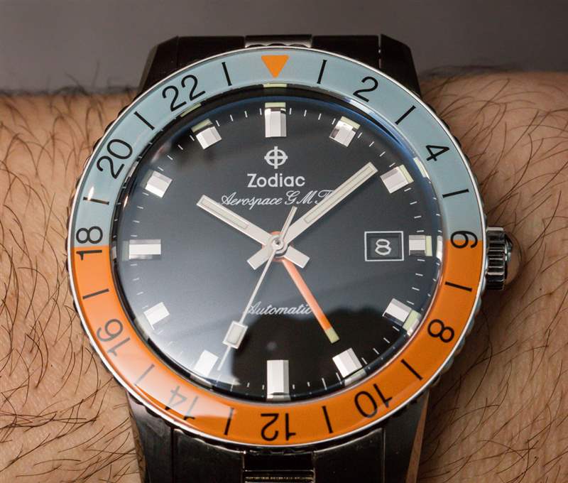 Zodiac Sea Wolf 和 Super Sea Wolf 手表都包含內部(至少在組內)機芯,但 Aerospace GMT 沒有。此外,航空航天 GMT 成本更高。它的成本更高,因為瑞士 ETA 2893-2 自動 GMT 機芯更貴,因為 Zodiac 無法獲得組內機芯定價。相信我,Zodiac 會很高興為 Aerospace GMT 配備 STP 機芯。問題是 STP 目前不生產 GMT 機芯,而 2893-2 自動機芯是一個很好的選擇。這是一款非常稱職的 GMT 機芯,而且不會太厚。在航空航天 GMT 中,ETA 與 STP 的走勢確實會稍微抬高價格,盡管價格是可以理解的。如果 STP 能夠在未來制造出 GMT 機芯,那么 Zodiac 無疑會利用它。