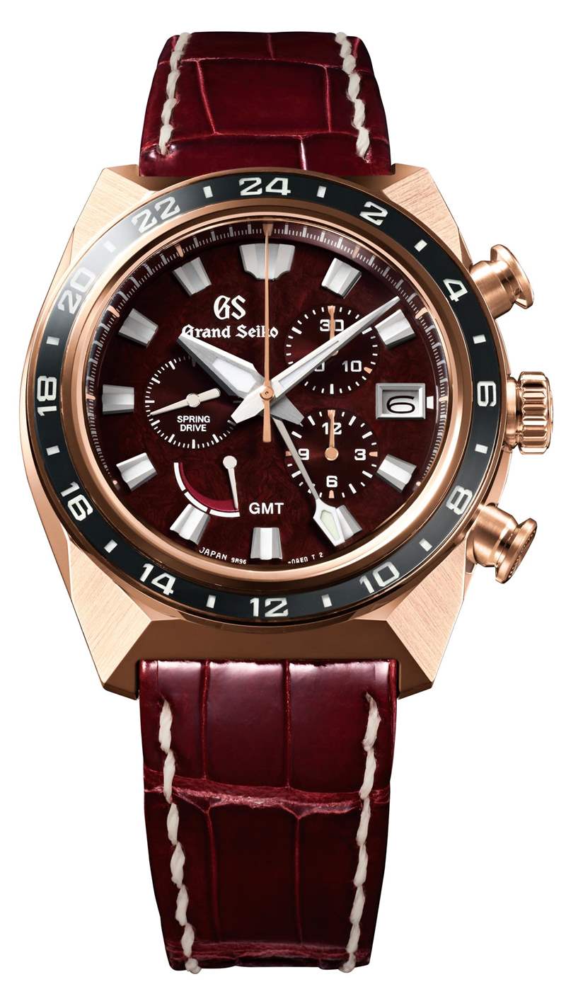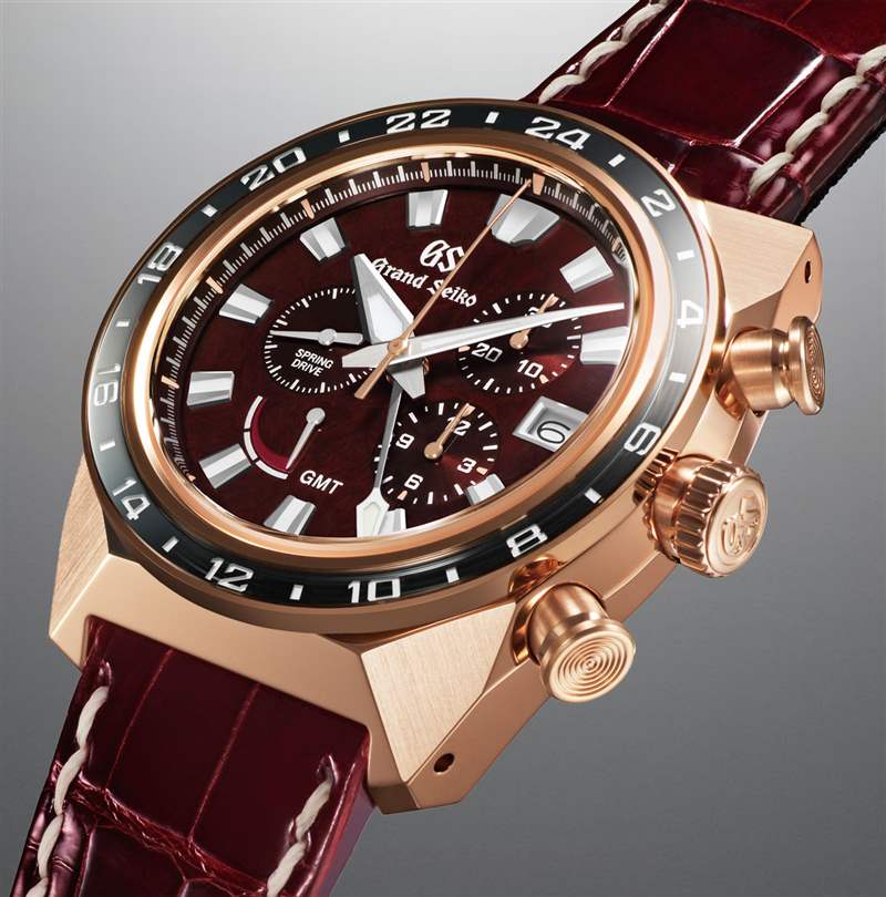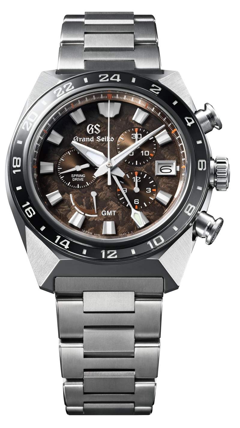 兩種型號都有有趣的表盤,深栗色表盤與金色 Grand Seiko Sport Spring Drive Chronograph GMT 相匹配,鈦金屬版則采用棕色紋理表盤。