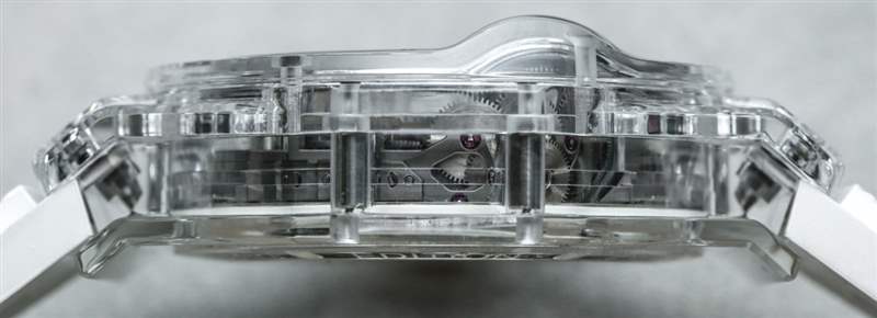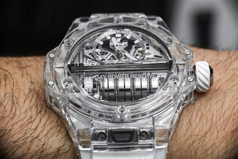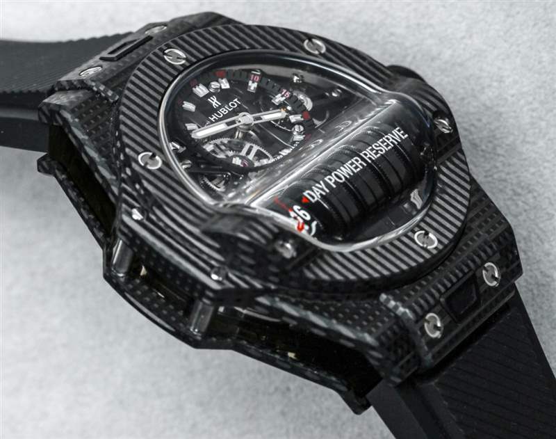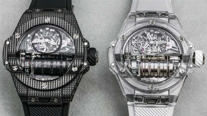 這款手表采用藍(lán)寶石水晶制成,具有可愛的外觀,可提供您對(duì)透明時(shí)計(jì)的一切期望。從各個(gè)角度欣賞機(jī)芯的能力以及了解材料極耐刮擦的能力是佩戴此類“以機(jī)芯為重點(diǎn)”的豪華手表時(shí)的主要優(yōu)勢(shì)。2018 年限量版還有 Hublot MP-11 Power Reserve 14 Days 3D Carbon。乍一看,這看起來像宇舶的傳統(tǒng)碳纖維表殼。它不是。宇舶聲稱這是一種碳纖維(與碳纖維相比),外觀簡潔。宇舶還在其 2018 年限量版宇舶 MP-09 的表殼中使用了這種新穎的“3D 碳”材料。3D Carbon 摸起來很光滑,但有一個(gè)有趣的圖案,它像碳纖維一樣深,但表面更啞光,使它成為碳纖維和黑色陶瓷之間的一個(gè)很好的中間地帶。鑒于它是碳,3D 碳外殼材料非常輕便。請(qǐng)注意,考慮到表殼側(cè)面是藍(lán)寶石水晶的感覺有多酷,即使是 MP-11 的 3D 碳表殼版本也有藍(lán)寶石水晶面。