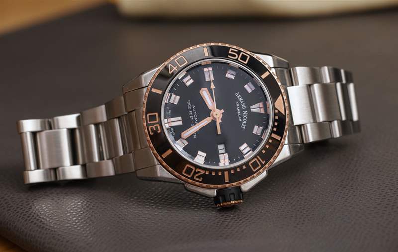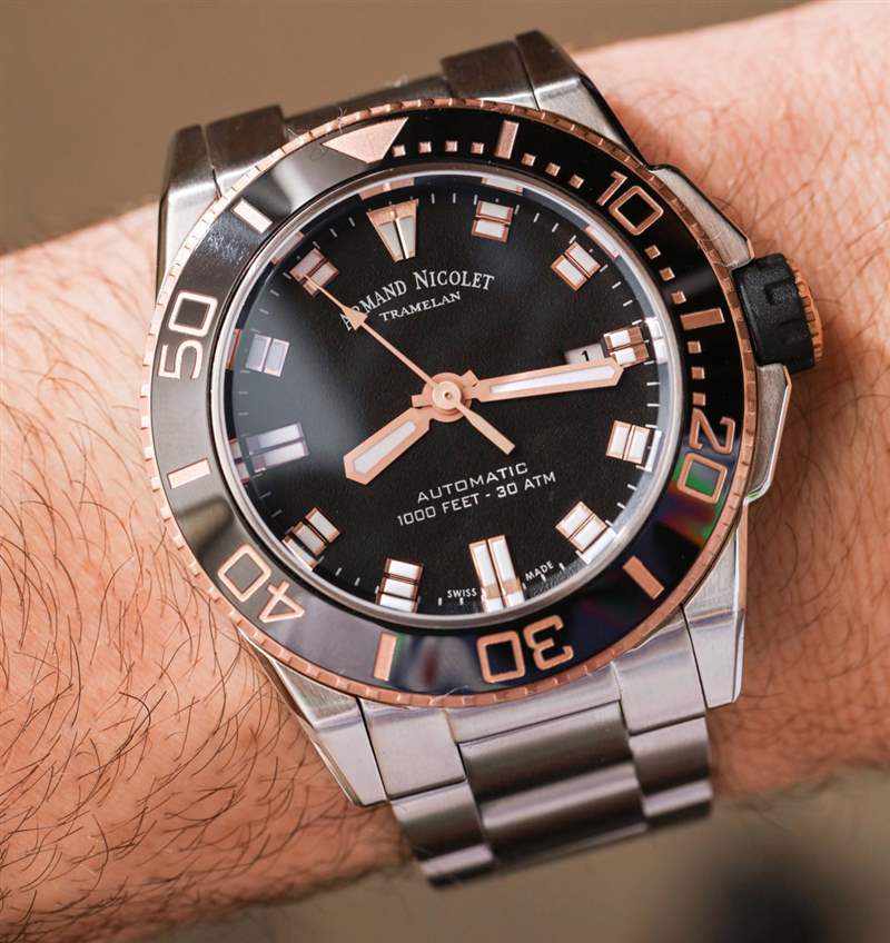 2018 年,瑞士手表品牌Armand Nicolet發(fā)布了 JS9 系列的全新潛水表系列。幾乎每個(gè)手表品牌都在嘗試在價(jià)值和風(fēng)格主張方面做出更好的潛水表。為什么?具有個(gè)性的運(yùn)動(dòng)型/功能型/表現(xiàn)力工具表是目前奢侈鐘表消費(fèi)者最需要的。那么讓我們看看 JS9 的表現(xiàn)如何。今天要評測的是 Armand Nicolet JS9 參考 A480ASN-NS-MA4480AA(一口),它是 JS9,帶有匹配的鋼表鏈,黑色和玫瑰金色調(diào)。這是 2018 年的新系列,在十幾個(gè)可用的變體中,我碰巧最喜歡這個(gè)模型的外觀和易讀性。