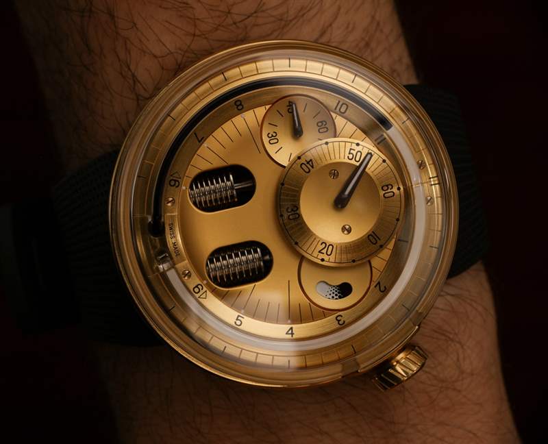 對于剛接觸 H0 表盤的人來說,了解如何讀取時間可能是一項挑戰。當我試圖知道如何將信息片段放在表盤上時,我會看到人們的臉上形成混亂的線條,從而獲得了輕微的虐待狂快感。它實際上只是調節器式顯示器的一種變體,它具有單獨的小時、分鐘和秒表盤。一個人只需要提前知道這一點。也許人們可以從這樣的時計中獲得的最大樂趣就是能夠完全忽略分鐘和秒。Botta 和 Meistersinger 等品牌幫助普及了僅顯示小時的“單手”表盤。顯然,H0 不是這樣的手表,但人們可以完全專注于管幾個小時,以至少或多或少地知道使用 12 小時格式的時間。即使這樣,