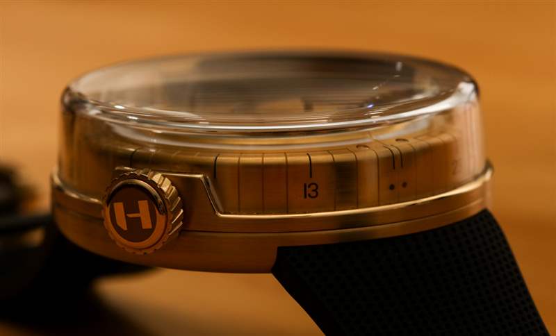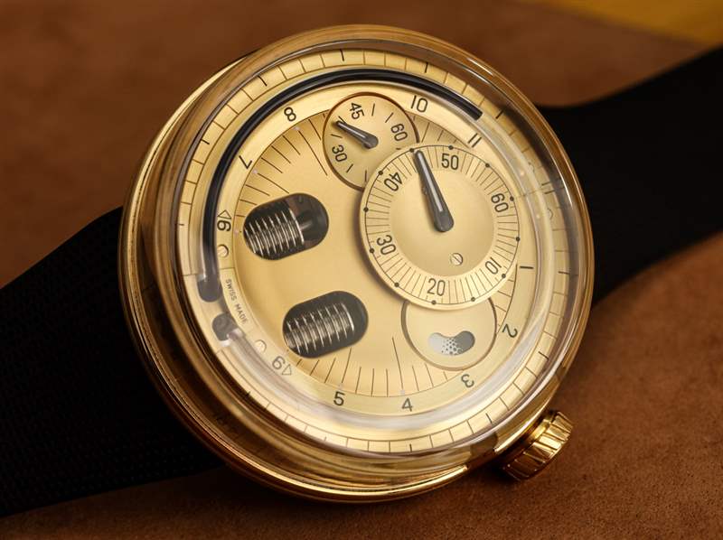 不僅僅是任何黃金,而是“香檳”金,因為優雅的營銷人員喜歡將 18k 2N“淡”金稱為 18k 2N“淡”金,它與黃金、玫瑰金和紅金等其他黃金合金并列。淡金色具有獨特的魅力,與高鏡面拋光相比,拉絲和緞面處理總是看起來更好。H0 的 48.8 毫米寬和 18.7 毫米厚的質量在你手中,這是否是真正的黃金物體的問題,或多或少會立即消失。這款手表可能是為思想開放的藝術愛好者設計的“時髦而優雅”的化身,但表殼材料即使是最保守的投資者也能理解。不過,請不要試圖與上述保守派人士爭論手表絕不是“情感投資,