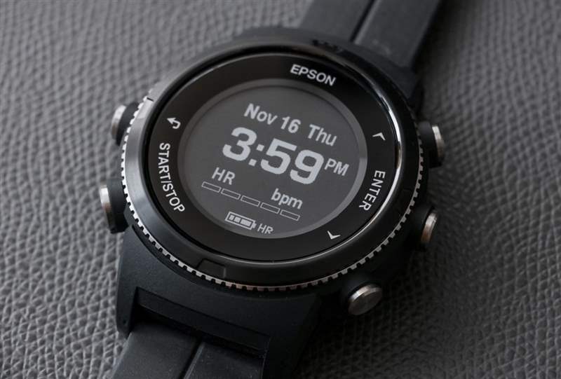 出于易讀性和電池壽命的主要原因,愛普生決定放棄多色高分辨率屏幕,轉而采用先進的電子墨水顯示器,他們稱之為“EasyView Display”(一種電子紙顯示器)。該顯示器的缺點是它是單色的,并且(按設計)不具有高刷新率。這意味著與 Apple Watch 之類的產品不同,您不會擁有具有明亮圖像和動畫的高分辨率、彩色顯示屏。好處是屏幕的明暗部分之間的對比度非常高,以及出色的電源效率。愛普生希望 ProSense 367 成為功能強大且可靠的基于 GPS 的健身工具。為了以令人印象深刻的電池壽命實現這一目標,他們需要一個非常高效的屏幕。廣告訊息廣告信息結束