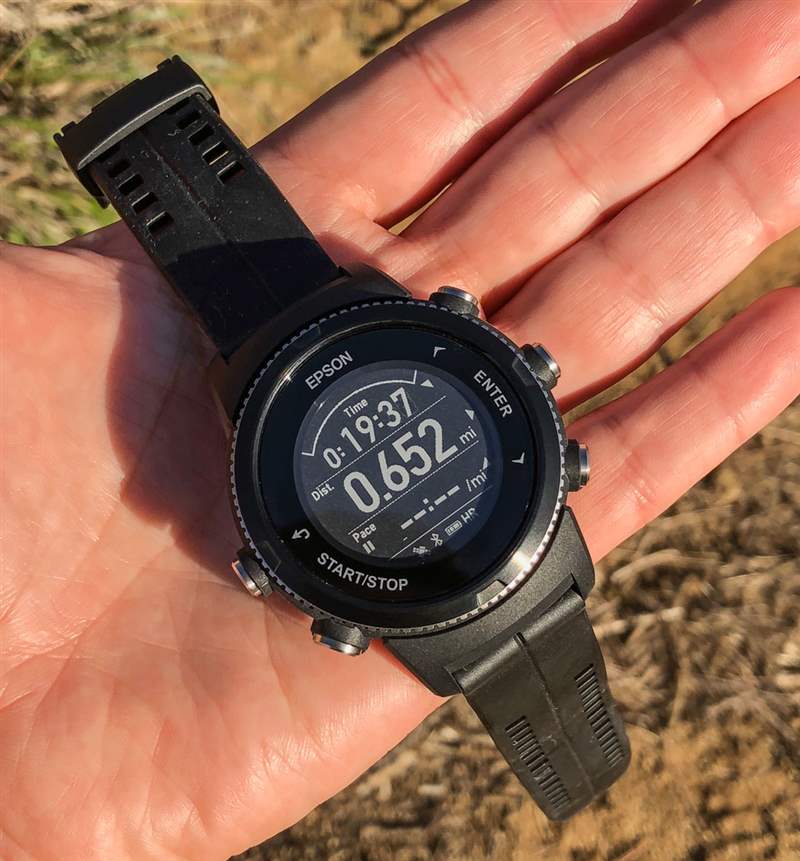 EasyView 顯示屏還得益于清晰易讀,正如我所提到的,這對于智能手表來說是一件大事。傳統屏幕通常太暗而無法在陽光直射下閱讀或需要電池密集型背光。擁有高對比度的電子紙顯示屏(愛普生和精工是專家)是擁有可以在戶外和陽光直射下輕松查看的健身智能手表的理想解決方案。在回顧 Epson ProSense 367 時,我一直在想“它可能不是最漂亮的健身智能手表,但它確實做得很好。”
